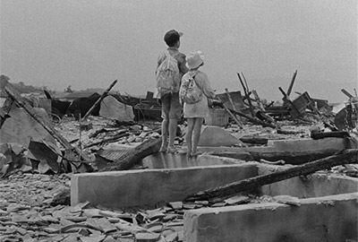 Sono Sion s’inscrit dans la tradition politique du pinku eiga. Le film inclut aussi des images d’une manifestation – si je ne m’abuse – contre la politique de remilitarisation du Japon aux alentours de la Diète. Mais l’idée de les intégrer s’explique peut-être tout simplement par le fait que ce bâtiment ressemble à un sein au téton turgescent.