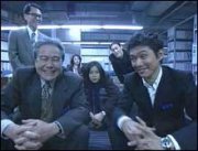 Voilà donc pour ce que j’ai - en gros - compris de l’histoire... on est clairement dans le surnaturel, et c’est d’ailleurs l’un des attraits principaux de Keizoku, sorte de X-files (puisqu’il est de mise, de nos jours, de tout comparer) en plus drôle et plus gore... bon, n’étant pas un spécialiste de la série américaine je ne m’aventurerai pas plus loin de peur de m’attirer les foudres des fans. Toute la première partie du film est très proche de la série TV (Keizoku), à savoir un humour prônant le non-sens ; à titre d’exemple, une séquence du film nous fait découvrir des policiers ouvrant des poubelles et découvrant dans chacune d’entre elles des morceaux de cadavres découpés. Arrive enfin la dernière à l’intérieur de laquelle se trouve la tête de la victime, un homme. A ce moment précis, sa femme, en pleurs, se rue sur la poubelle et saisie la tête ; les policiers réussissent à la lui reprendre et, alors qu’elle les poursuit, ils se font des passes tout en courant, transformant la tête en ballon de rugby...! Oui, c’est sûr, ça peut paraître étrange comme ça mais je vous jure que ça fait rire sur le moment.