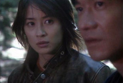 Cat’s Eye est servi par un casting composé de deux stars estampillées King Record (la boite de production du film) que sont Izumi Imamuri, qui prête ses traits à Hitomi et Yuki Uchida qui quand à elle campe le personnage de Ai ; le choix d’Imamuri (Yonimo Kimyouna Monogatari / Tales from the Unusual) pour le rôle d’Hitomi est à mon avis le moins judicieux des trois, son côté fade étant en total décalage avec l’image que nous renvoyait le personnage original... mais peut-être est-ce encore un choix délibéré de la part d’Hayashi. Par contre, il en est tout autre pour Ai, la plus jeune des sœurs qui est ici jouée par la jolie Yuki Uchida, chanteuse/actrice que l’on a notamment pu voir dans Hanayori Dango (1995), Beat (Amon Miyamoto /1998) ou encore dans un grand nombre de drama dont l’excellent special Bangai-hen Wangan Police Station - Shoka no Kotsu Anzen. C’est elle qui sans conteste possède le personnage le plus aboutit en même temps que le plus attachant... Puis dans le rôle de Rui la grande sœur, c’est tout simplement la bombe des cover-girls/actrices, j’ai nommé Norika Fujiwara (Hanayori Dango, China Strike Force), qui gainée dans sa tenue de latex est très... en forme !...