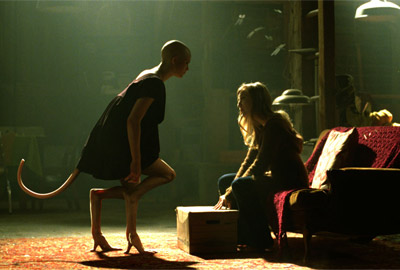 En réduisant le monde virtuel des salons de discussions à de vastes couloirs baroques, colorés et lumineux, où chacune des pièces est à l’image du chat qu’elle abrite, le réalisateur japonais offre un visage original et visuellement intéressant au réseau. En total contraste avec le monde réel, vers lequel Nakata nous ramène parfois, le décor est tout de suite posé, et une sorte d’accord tacite avec le spectateur est subtilement établi de façon à se repérer. La chatroom en question, celle où se déroulera la majeure partie des échanges entre les protagonistes, est simple. Une pièce vaste, vide, meublée uniquement par quelques chaises. S’il y aura toujours des esprits chagrins pour se plaindre d’une vision imagée d’Internet, force est de constater que Nakata sait ici faire preuve de sobriété et d’un certain esthétisme, pour nous laisser nous concentrer sur l’essentiel.