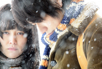Tout n’est pas qu’indiens torses nus, homo-érotisme et peaux qui scintillent sous les rayons du soleil ; n’en déplaise à la frustration de Kristen Stewart, il y a d’autres façons de jouer le romantisme sexuellement exclusif que de se mordre la lèvre à chaque perspiration intime. Il y a, en effet, la mièvrerie borderline de Sayuri, complètement dénuée d’érotisme, fantasme de gamine perpétré dans un très discutable âge adulte. Cheveux sales et emmêlés, peau suintante et lunettes encombrantes ; Miki Nakatani n’est certes pas la première actrice, dont on s’amuse à dissimuler la beauté derrière une caricature de la laideur pour mieux la révéler ensuite, mais l’héroïne de Ring, Chaos, Loft, et autre Memories of Matsuko s’en sort à merveille. Peut-être un peu trop bien, même, Miki surjouant chaque travers et émotion d’un personnage qui n’est fait de rien d’autre. La vraie vie n’a que peu d’emprise sur Christmas on July 24th Avenue ; d’ailleurs l’imagination de Sayuri s’imprime régulièrement sur l’image, au travers de charmants gribouillis mais aussi d’apparitions non sensiques, de supporters portugais encourageant la rêveuse, dans un japonais approximatif, à trouver le courage de ses sentiments.
