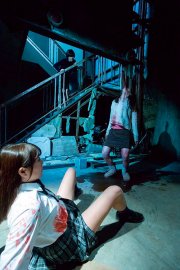 Nous savons les japonais très friands de ce type de surnaturel, et Creepy Hide & Seek s’inscrit dans le tout venant du V-cinema horrifique, en dépit d’une promotion qui promettait bien plus de gore que Kaoru Adachi n’en offre en réalité. N’en déplaise à un empalement enthousiasmant – mais qui demande tout de même au spectateur clément d’ignorer le non alignement des deux extrémités du pal, ainsi que la physique impossible de l’accident – sieur Adachi est moins intéressé par les viscères et autres attributs sanguinolents du genre, que par les petites culottes de ses actrices délocalisées. Les gros plans sur leurs bouches, les lèvres humides, très typés AV, sont sans doute les plus obscènes – mais aussi les plus appuyés - du film, qui reste très prude (à quelques poitrines près) en dépit de l’incorrection permanente de ses cadrages. Le gore partage pourtant de nombreux points communs avec la pornographie, qui auraient du permettre au réalisateur de laisser couler sa verg... pardon, sa verve. Dommage.