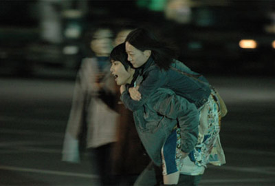 Distance est un film qui peut facilement, à premier abord, paraître trop hermétique, et c’est pourtant dans cette démarche d’austérité volontaire que réside sa force, et par conséquent son intérêt. Long et lent, le film se paye de plus le luxe de n’avoir aucun accompagnement musical. Pendant les trois premiers quarts d’heure, il faut bien avouer qu’on redoute un peu l’heure et demie restante. Mais ce silence est au contraire bénéfique au film, puisqu’il place le spectateur (si tant est qu’il rentre dans le film, sinon je pense que ça doit être dodo immédiat) dans un état d’attention relativement rare, qui lui permet de saisir plus facilement tout ce qui se cache derrière les paroles des protagonistes, dans leur silence et dans leurs attitudes. Une fois le groupe installé dans la cabane, le spectateur a un peu l’impression de s’installer avec eux, partageant la même gêne inconfortable, et d’attendre que l’un d’entre eux prenne la parole pour que chacun puisse lâcher ce qu’il a sur le cœur.
