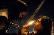 A citer particulièrement le jeu de chacun des acteurs. Ahn Sung-ki (« Ahn » tout simplement dans le film) est tout bonnement parfait dans son rôle. Il n’a aucun mal à jongler avec les émotions de son personnage, à être comique sans tomber dans le bouffon, ni à assurer dans les scènes d’action. Je me répète mais cet homme là, a une sacrée présence à l’écran ! Et en plus, il a la classe. Venons-en aux deux rôles principaux, Ha Ji-won (Namsoon), et Gang Dong-won (Sad Eyes). Certains reprocheront à Ha Ji-won son jeu et les mimiques de son personnage de garçon manqué, qui reprennent celles de Park Jung-Hun dans Nowhere to hide (Sur la trace du serpent) du même réalisateur. Mais force est de constater que lorsque l’on rencontre en chair et en os Ha Ji-won, on est loin d’imaginer que c’est la même personne qui interprète Namsoon, et effectue toutes ces scènes d’actions et de combats ! Autant dire qu’elle ne s’est pas ménagée à la tâche afin d’incarner ce personnage, pour notre plus grand plaisir. Quant à Gang Dong-won, il est juste dans ce rôle d’épéiste froid et mystérieux, qui s’humanisera au cours du film. Néanmoins, si vous n’êtes pas de la gent féminine (coréenne en particulier), il se pourrait que vous lui trouviez un certain goût d’endive quand même. Et après tout à chacun son palais !