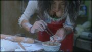 Ainsi Dumplings est-il avant tout un véritable travail pictural, un film de mise en scène pure. La présentation des personnages se fait implicitement, au travers de leur placement dans le cadre, plus qu’explicitement, au travers de leurs interactions dialoguées. Miriam Yeung interprète parfaitement Madame Lee et sa frustration polie, mais son caractère se dessine paradoxalement, au travers de son caractère limitrophe au cadre, presque extérieur même au cours de ses premières minutes à l’écran. Lorsqu’elle n’est pas hors-champ bien que partie prenante d’une scène, elle est soit « coupée » soit dissimulée derrière une surface semi-opaque, ou encore un tissu partiellement aéré. A l’opposée Bai Ling, qui interprète Mei, est présentée plein cadre, avec une force d’évocation qui tiendrait presque du racolage si, là encore, les plans de Chan et Doyle n’étaient pas si bien composés. Personnage entièrement physique, Mei nous est principalement montrée comme un objet de désir implicite, penchée sur son travail de préparation culinaire pour nous offrir l’attrait délictueux de son magnifique décoleté - ou lorsqu’un point d’ombre devient le point « lumineux » d’une image, draînant le regard du spectateur vers lui, au creux de cette féminité exacerbée. De la même façon lorsque les deux femmes anticipent ou ressentent du désir au travers de leur cannibalisme, Miriam Yeung le fait presque avec honte, tandis que Bai Ling s’expose - quoique vétue - sans la moindre retenue.