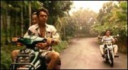 Hou Hsiao Hsien utilise de tels filtres (rouges et verts notamment) dans plusieurs scènes. La raison, pas immédiatement évidente, semble double. D’abord, c’est la subjectivité du point de vue qui force la mise en place de ces filtres (Tête d’obus porte en permanence des lunettes colorées et c’est son regard qui est porté à l’écran). De manière générale pourtant, ils montrent bien la nécessité pour les personnages de transformer l’image, de modifier la réalité pour la rendre plus supportable, et là encore, plus "romantique". Nos héros ne sont pas en phase avec leur époque, et le cinéaste utilise un moyen original pour nous le faire ressentir : il filme les divers déplacements de ses héros en caméra fixe ou stable (c’est à dire embarquée et immobile, généralement tournée vers l’arrière, le passé) et les moments de repos ou d’attente (repas, conversations, instants intimes) avec une caméra en mouvement (à l’épaule ou explorant l’espace grâce à une louma). Cette alternance ajoute au rythme inhabituel du film (très relaxant, les scènes d’action ou de transit en devenant presque méditatives - tel le plan séquence magnifique du voyage en moto, où la joie de conduire prend le pas sur le trajet lui-même et sa destination finale). Un rythme basé sur celui d’un train, le tempo d’une chanson punk, bref, le rythme d’une vie. Désespérant, le réalisateur bloque tout échappatoire, puisqu’on ressent constamment un fort statisme, y compris dans les déplacements.