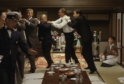 L’auteur subvertit un genre usé jusqu’à la corde tout en condamnant le recours à la vengeance et son cycle de violence, lors d’une mystification théâtrale pleine d’esprit visant à tromper la famille de Sozaemon et faire croire à l’accomplissement d’une vengeance héroïque. Kore-Eda, que l’on ne savait aussi satirique, se moque aussi ouvertement des 47 Rônins et de son fameux messager, interprété par un Susumu Terajima qui semble abonné aux gags scatologiques, depuis qu’il s’est fait coiffé d’un étron par Katsuhito Ishii (voir l’article The Taste of Tea). Et que dire de l’instrumentalisation que font les habitants du quartier, appâtés par le gain opportuniste de l’exploitation de la vengeance des Rônins, clin d’oeil malicieux aux dérives des médias, propres à tirer profit de chaque fait divers...