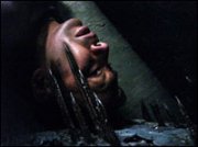 Haze démarre sur un trio cher au réalisateur : des gros plans qui hésitent entrent l’immobilisme et l’oscillation forcenée, une musique rigoureusement mécanique de Chu Ichikawa et son propre visage. Ce visage sur lequel se lit la peur panique, l’incompréhension ; un instant seulement puisque le corps se perd, incontrôlable, glisse hors de portée. Comme dans tous les films de Tsukamoto, cette séquence est la quintessence d’un cinéma naviguant constamment entre deux extrêmes : le statique et le « sur-cinétique ». La caméra est à retour de force, tout comme la bande son se fait l’écho de chaque mouvement, de chaque coup, de chaque émotion. Deux scènes de Haze sont ainsi de véritables modèles de mise en scène : lorsque Tsukamoto se retrouve piégé, la bouche fermée sur un tuyau métallique trop grand pour éviter un épouvantable frottement, dans un couloir trop étroit pour dégager sa tête de cette interminable pomme d’angoisse. L’acteur-réalisateur-victime se déplace en latéral dans un grincement errintant, sous les assauts d’une musique qui souligne chaque tressautement de ses muscles, chaque veine qui explose dans ses yeux exorbités. L’autre merveille de symbiose cinématographique repose dans cette scène de voyeurisme involontaire, où Tsukamoto est témoin de la mort de plusieurs hommes pris au piège. La caméra, déjà écrasante dans cet environnement claustrophobe, se fait massue, d’une rare violence, et la musique d’Ichikawa assène chacune de ses ponctuations rythmique avec une puissance toute industrielle. Le rendu final est époustouflant.