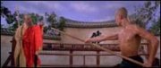 Véritable film dans le film, la deuxième partie du métrage, suit l’entraînement de Liu-Yu-de rebaptisé San Ta à travers les 35 chambres des Shaolin, quête spirituelle tout autant que physique. Chaque chambre permettra à San Ta de forger dans un premier temps une partie de son corps tout en faisant appel à son intelligence afin de surmonter l’épreuve proposée. L’intérêt de cette seconde partie et du film dans son ensemble, réside justement dans cette phase d’apprentissage presque ludique, et dans la diversité et l’originalité des épreuves que San Ta devra franchir. Epreuves le plus souvent à double tranchant, qui apportent aussi leur lot de douleurs et de frustrations. Ainsi pour parfaire son sens de l’équilibre, San Ta devra traverser une mare d’eau en passant sur des troncs d’arbres flottants, seul chemin pour aller se restaurer. Il faudra de nombreuses tentatives et un entraînement spécial avec des seaux à San Ta pour arriver à passer cette épreuve. Dans une autre chambre, pour affiner son sens de l’observation, San Ta devra suivre des yeux et seulement des yeux un balancier alors que sa tête est coincée entre deux bâtons incandescents. Dans la deuxième partie des épreuves, San Ta après avoir forger son corps, va apprendre le maniement des armes de l’école Shaolin. Du kung-fu au bâton en passant par le sabre, c’est l’occasion pour Liu Chia-liang de nous proposer quelques chorégraphies martiales très bien rythmées, annonciatrices de la dernière partie du film.