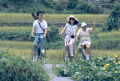 Le voyage par vaux et chemins de terre offre un espace de liberté, où les différences sociales entre les deux personnages s’estompent. Voyageant seul, Kawasaki n’est influencé ni par ses parents et ni par son entourage. Seuls tel voyageur de passage ou tenancière d’hôtel lui rappellent le soupçon dont sont entourées les troupes d’artistes ambulants.
