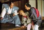 ...au premier abord, ce Mayonaka no Yaji-san Kita-san est une sorte de melting-pot de tout ce dont est capable Kudokan ; on y retrouve son goût pour le non-sens exacerbé, un scénario à divers degrés de lecture, un univers totalement barré... mais il s’agit avant tout d’une vitrine du Geinoukai -le monde du spectacle nippon- le plus hype et branchouille de ce new mainstream, où l’on retrouve une bonne partie de la "famille" de Kudokan, dont un Riki Takeuchi grandiose, devenu culte auprès de la jeunesse, notamment grâce à la chanson de Gurupu Tamashii -le groupe punk-rock de Kudokan [3] -, "Takeuchi Riki", ode à l’acteur au refrain entêtant, donnant à Yajisan Kitasan des allures de film de potes... Faire un résumé clair et précis du film paraît tenir de l’impossible, tant les ressorts sont nombreux, les personnages et leurs relations (la femme de Yaji-san...) suffisamment denses, sans parler des nombreuses références historiques, ou relevant parfois de la culture sous-jacente actuelle, qui font de Yajisan Kitasan un film purement japonais, difficilement traduisible (et exportable) hors du contexte de l’archipel.