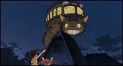 C’est bel et bien la mère qui est à l’origine de tout. On lui doit l’existence des Totoro et Satsuki, l’aînée des deux filles, trouvera à travers elle la force de devenir adulte. C’est pour vaincre l’épreuve que représente son absence que les deux filles se réfugient dans le rêve, dans ce monde féerique qu’elles imaginent. Une imagination si puissante qu’elle va leur permettre de surmonter le traumatisme. Le trou, passage d’un monde (réel) à l’autre (merveilleux, celui des Totoro) constitue le moyen de laisser derrière soi les problèmes, de tout oublier dans une dimension fantastique peuplé de créatures protectrices. On pourrait se poser la question de savoir si les aventures des filles avec Totoro ne sont pas purement imaginaires (Satsuki : "Comment se fait-il que personne d’autre ne voit le chat-bus ?") ? Cela a-t-il vraiment de l’importance ? De toute façon, les créatures deviennent réelles pour Satsuki et May comme pour nous, et ce par la seule force de leur conviction. Satsuki pourrait en effet paraître trop âgée pour croire aux Totoro et autres chat-bus. Pourtant, à un moment charnière de sa vie (la route vers l’âge adulte), elle choisit de se réfugier dans l’enfance, pour mieux rebondir. Bercé par le rythme tranquille du film, le spectateur décide bien vite d’en faire autant. Le refuge, la protection sont des thèmes majeurs de ce film, qui replace à cette occasion l’homme et la nature à leur niveaux respectifs. Totoro, roi de la forêt, symbolise effectivement le pouvoir protecteur de Mère Nature envers ses enfants turbulents et ingrats, nous. Cette idée, chère à Miyazaki (cf. Princesse Mononoke), est extrêmement bien mise en valeur par le dessin et l’animation. La recherche des détails de l’arrière-plan, l’agressivité de certaines couleurs contrastent avec les couleurs discrètes et les lignes simples, rondes et rassurantes des Totoros. La plupart des plans larges de paysage sont prétextes aux plans de "caméra" osés qui donnent du relief à l’image et ce sans utilisation d’images de synthèse. Les nombreux plans en plongée, combinés aux contrastes volontairement marqués du panorama (arbres immenses, plaines de rizières) montrent bien l’homme tel qu’il est, minuscule, sans défense, en besoin d’une protection qui ne peut venir que d’en haut. L’arbre magique que fait pousser Totoro et qui étend ses branches, une nuit, au dessus de la maison en est encore un exemple frappant. La nature, protectrice en elle-même et par l’intermédiaire de ses représentants (Totoro, le chat-bus), construit une muraille sécurisante autour des enfants, suite à leur appel à l’aide. Un refuge que d’autres, tel le père des enfants, trouveraient dans la religion.