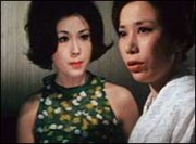 Mais que serait Manji sans ses deux interprètes féminines ? Ayako Wakao donc, que l’on a pu voir dans l’exceptionnel Akasen Chitai (La Rue de la Honte /1956) du grand Kenji Mizoguchi, mais également dans plusieurs films de Kazuo Mori (Midori no Nakama /1954 ; Hotaru no Hikari /1955 ; Suzaku Mon /1957...), et autres réalisations de Kon Ichikawa, Yasujiro Ozu, Kenji Misumi, et j’en passe. Sublime actrice, habituée du grand Masumura (Aozora Musume /1957 ; Karakkaze Yaro /1960 ; Senba Tsuru /1969...)... A ses côtés, la non moins - si ce n’est plus ! - célèbre Kyôko Kishida, dont la présence sur les écrans nippons - petits et grands - dure depuis près d’un demi-siècle. De Niizuma no Negoto (Keigo Kimura /1956) à Sukedachiya Sukeroku (Kihachi Okamoto /2002) cette grande actrice habituée de Masumura depuis son sixième film (Futeki na Otoko /1958) a joué dans pas moins de soixante-seize longs-métrages dirigés par les plus grands, sans parler de ses nombreux rôles à la télévision...