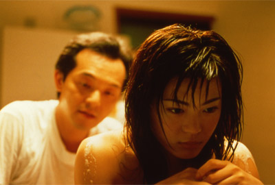 Réalisé donc, par Masako Matsuura, réalisatrice quadragénaire à qui l’on doit notamment Secret Liaisons (1995), Debora ga Raibaru (1997) [avec Hinano Yoshikawa (Tokyo Eyes de Jean-Pierre Limosin)] ou encore Dan-ball House Girl (2001), Platonic Sex a une petite histoire par rapport au choix de son actrice principale ; l’actrice qui devait interpréter le rôle d’Aoi/Ai serait une inconnue choisie sur audition. Une annonce est donc passée, et ce n’est pas moins de 12 083 jeunes filles qui y répondent... C’est finalement la jeune Saki Kagami, alors âgée de seize ans, qui décrochera le rôle grâce... à ses yeux ! (enfin grâce aux expressions qu’elle parvenait à faire passer avec son regard hein, pas en faisant du trafic d’organe !). A ses côtés on retrouve Joe Odagiri - qui est mortel puisqu’il joue dans l’un des plus grands dorama de tous les temps, j’ai nommé Hatsu/Tai/Ken (...n’oubliez pas que vous êtes sur Sancho !), Maho Nonami, mais surtout Hiroshi Abe (Rush !, Tokyo Raiders, Crazy Lips...) dans le rôle d’Ishikawa, sorte d’ange/démon au bon cœur, un personnage qui grâce à ses facéties (vous en connaissez beaucoup vous des gens qui écoutent du Meiko Kaji à donf dans leur décapotable ?!!) permet au spectateur - et à Aoi - d’émerger quelque peu de cet univers escarpé...