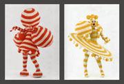 Dès les premiers instants, Pyuupiru détonne par son indéniable et troublante personnalité, sensible et émouvant androgyne au talent protéiforme. Son œuvre, d’une rare originalité, à la fois chatoiement de couleurs, de formes et de textures, brasse une multitude d’idées ahurissantes et semble venir d’un autre monde. C’est un peu comme si ce voyant halluciné était directement allé arpenter le cosmos pour élaborer sa série de costumes inspirée par les astres du système solaire. Univers qu’il est le seul à connaitre, à pouvoir nous faire découvrir et dont Matsunaga est l’indispensable accompagnateur.