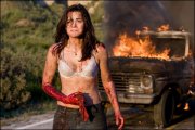 Autre point positif de Rest Stop, son côté graphique certain : doigts arrachés, jambes outragées à la perceuse, cervelle brutallement exposée… il y a de quoi faire pour qui aime en savoir plus sur les comportements limitrophes du corps humain. Il y a même une certaine volonté de méchanceté. Alors, avec une héroïne qui termine en soutien-gorge, pas mal de gore frontal et une isolation propice aux pires rencontres redneck (la famille dans le camping car, caricature de la dégénérescence façon « make it weird, put a dwarf in it ! »), comment Rest Stop peut-il passer à ce point à côté de la plaque ? Tout simplement en étant mal écrit, rythmé, et réalisé. D’une platitude grandiloquente, ce premier long de Shiban réussit l’exploit de ne jamais effrayer ou ne serait-ce qu’inquiéter, et même de désamorcer chacune de ses explosions graphiques. Shiban tente la froideur dans le traitement, mais le rendu global de l’image, trop chaud, fait que la distanciation se tranforme en inattention ; les scènes, façon torture-porn trop conscient, deviennent alors de simples anecdotes de cruauté plastique. Tiens, je me suis fait manger un doigt par un psychopathe, dis-donc… Ici l’horreur n’a pas de visage, mais au lieu de demeurer incertaine et inquiétante, résidant hors-champ au-delà des quelques bribes que l’on peut deviner par le biais du regard de Nicole, elle devient simplément impersonnelle et sans intérêt. Shiban devrait s’en retourner potasser Wolf Creek, son intelligence de localisation et de confrontation explicite, ses teintes et ses silences, pour comprendre pourquoi son arrêt pipi est vraiment loin d’être satisfaisant…