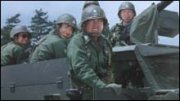 Sengoku Jieitai ne cherche pas à nous amener dans les arcanes de la relativité ou de la mécanique quantique pour chercher à savoir comment il serait possible de revenir à l’époque moderne, ou accessoirement comment en est-on venu à se retrouver au milieu de samouraïs. Loin s’en faut. Le groupe à vite fait d’abandonner l’idée d’un retour et décide plutôt de s’organiser. Mais plutôt que d’organisation, le groupe se scinde globalement en deux. D’une part les fidèles du Lt. Iba qui choisissent la cohésion, pour ne serait-ce que survivre et voir comment les choses se passent, et ceux du mentalement instable et particulièrement violent Nobuhiko, un ex-ami du Lt. Iba avec qui il avait fomenté un coup d’état avorté, qui ne pense qu’à profiter de sa présence ici, dans un espace de non-temps, pour violer et massacrer. Cette dualité offre la première partie du film, qui peut presque être vue comme un seishun eiga. Absence d’action, aucune interaction véritable avec les indigènes de l’époque mais seulement une confrontation interne aux troupes, et surtout une opposition entre le Lt. Iba et Nobuhiko qui se conclut par le Lt. Iba achevant ce qui peut être vu comme son propre côté sombre. Ou plus exactement se l’approprie pour mieux l’exprimer. Cette première partie installe le Lt. Iba comme le héros charismatique, posé et un poil humaniste (il laisse ses hommes déserter s’ils le désirent), par opposition aux cruel Nobuhiko, incarnation du soldat sans pitié et sanguinaire.