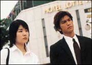 ...l’un des points forts de Seoul est sans aucun doute son acteur principal, Tomoya Nagase ; pour son premier rôle sur grand écran, le chanteur du groupe Tokio [1] s’en tire plutôt bien, en y livrant une interprétation quelque peu surfaite mais pleine d’humour, composant une sorte d’ahuri chronique qui passe les trois-quarts du film à recevoir beigne sur beigne... A la ville petit ami d’Ayu (Ayumi Hamazaki, la reine de la J-pop), on a pu le voir principalement à la télévision dans Hakusen Nagashi, Ringu Saishûshô, mais surtout dans le culte et génial drama réalisé par Yukihiko Tsutsumi (Keizoku, Trick), Ikebukuro West Gate Park... Mais plus que tout autre chose, Nagase est le leader de Tokio - groupe tout droit sorti de l’écurie Johnny’s, tout comme les géniaux Smap -, et ça... hé hé hé !! Un groupe qui sort en 2000 une chanson comme Minna de wâ ha ha ! (écrite par Tsunku, ex-leader des mythiques Sharan Q reconverti dans la création du concept Morning Musume) n’a pas peur du ridicule, et donc peut personnifier légitimement une certaine conception du bonheur ( !). A ses côtés, on retrouve dans le rôle du flic taciturne, un traumatisme bien ancré en lui, l’excellent acteur coréen Choi Min-Su, vu dans Yuryeong (Phantom the Submarine) ou encore Libera me...