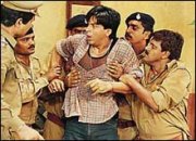 Et puis une fois de plus, le film change encore d’aspect avec l’arrivée de notre acteur indien favori jusqu’à maintenant, j’ai nommé Shah Rukh Khan (ici dans un "dynamic role" comme le précise le générique). Cette partie du film est la plus débridée, la plus folle, la plus "n’importe nawak", quoi. Shah Rukh Khan apportant avec lui un certain humour (il fait le pitre avec clope et lunettes devant des flics enfermés dans leur propre prison, un grand moment de "poseur" que n’aurait pas renié Chow Yun Fat) souvent très mal placé, et en décalage tellement complet avec le reste du film qu’on a l’impression qu’il ne joue pas dans le même film (vu que comme à son habitude, il surjoue à fond, c’est impressionnant). Mais ce n’est pas tout, car Shah Rukh Khan se charge aussi de la partie action, et là encore ce n’est pas triste, on a ainsi le droit à des coup de pieds en l’air câblés (mais à quand Shah Rukh Khan avec Jet Lee ?), mélangés à des effets à la Matrix, mais aussi à des bonnes scènes bien sanglantes à l’arme blanche. Ajoutez à cela une tornade et une balle en CGI ainsi que des mouvements de caméra "clipesques", et vous comprenez que le côté Jamais sans ma fille a pris du plomb dans l’aile.