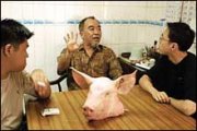 Passée cette première déception (qui n’est pas à mon honneur, je vous l’accorde), que reste-t-il de nos amours - je veux dire, de Talking Cock qui puisse justifier que, même si vous ne pouvez en témoigner, j’ai le sourire jusqu’aux oreilles en écrivant ces quelques lignes ? Comment devient-on un voyou diplômé ? Pourquoi le Turbanator veut-il me pincer les tétons ? Pourquoi le chewing-gum est-il interdit à Singapour ? Enfin, comment Colin Goh peut-il être à la fois l’homme le plus sympathique et le plus ignoré de l’édition 2003 du festival du film asiatique de Deauville ?