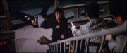 Finalement, il se retourne contre les cinq dragons, bien décidé à leur pourrir leur plan. Il va ainsi carrément voir le protecteur de Saraï qui n’est autre qu’un grand maître de karaté, Masaoka (Masafumi Suzuki, c’est lui qui règle les combats de ce film), pour lui proposer ses services. Là encore impossible de décrire le tact et la diplomatie de Takuma Tsurugi. Il se rend directement au dojo du maître, casse la gueule à la moitié des élèves et affronte le maître dans une séquence d’anthologie, véritable publicité pour O’cedar. Et l’on apprend au détour d’un flash-back le pourquoi du comment qu’il se fait qu’il soit un vrai « badmotherfucker ». Tout simplement à cause des derniers mots de son père, fusillé comme traître à la patrie pendant la guerre en Chine alors qu’il étudiait le kempô chinois [1] : « Takuma, ne fais confiance à personne. Dans ce monde tu ne peux compter que sur toi. Apprends à te battre. Endurcis-toi. Deviens le meilleur. Jamais personne ne doit te battre. ». Ajoutez à cela des lacunes dans les rapports sociaux, en particulier vis-à-vis de l’unique ami qu’il a (son sidekick nommé « Chameau ») et des femmes, une allergie totale à l’autorité, voilà le programme de la machine à tuer qu’est Takuma Tusrugi. Son énergie, la rage pure. Son objectif, satisfaire la soif de baston du spectateur, dans un déluge de sang et de mutilations diverses et variées. C’est bien simple tout y passe, strangulation, énucléation (les deux yeux à la fois, avec les doigts bien plantés dans les orbites en gros plan !), émasculation, fractures en pagaille, éclatage de crânes (plan ahurissant la tête de la victime fracassée, montrée aux rayons X en pleine action !), rupture des cervicales à coups de pied, et surtout arrachage à mains nues des cordes vocales, pomme d’adam comprise. Le film se conclut sur un duel désormais mythique en pleine mer, sur le pont d’un pétrolier, sous la pluie, séquence dont on aura aperçu des images dans le True Romance de Tony Scott, écrit par Quentin Tarantino.