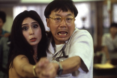 ...qu’est ce qui fait d’un film, un film de Kaizo Hayashi ?! Son univers barré qui mêle un cinéma grand public à un univers non-sensique et cheap ? Oui ! Et invariablement Zipang n’échappe pas à cette règle ! Le terme cheap n’est pas péjoratif chez Hayashi, puisqu’il revendique clairement cet aspect de son cinéma depuis ses premiers films. Evidemment, il suffit de voir l’éléphanteau qui accompagne nos amis pour comprendre très vite que ce n’est pas le genre de la maison de se prendre la tête avec des détails aussi futiles que "essayons de rendre cet éléphant un minimum réaliste", son côté gros truc en plastoc assumé étant clairement affiché. Le sérieux de ses personnages est également mis à mal tout au long du film, et leur jeu souvent très théâtral ne peut que rappeler tout l’amour qu’Hayashi porte au films muets. Le sur-jeu est ici un élément primordial du bon fonctionnement de l’objet filmique non identifié que constitue Zipang...